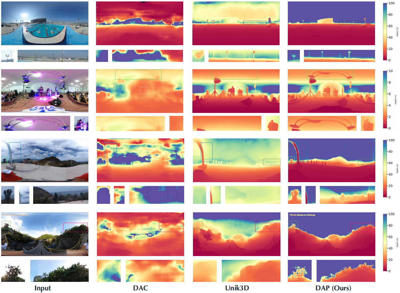 edge fidelity, and geometric consistency in panoramic depth estimation.